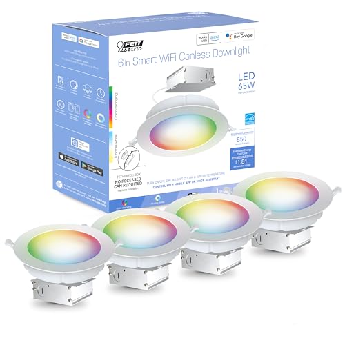 Check Price →Get the Feit Electric 6 Inch Smart LED Canless Recessed Downlight 4 Pack if the job is a whole basement or kitchen upgrade on an Alexa or Google Assistant household and budget matters more than premium color. Check price on Amazon.