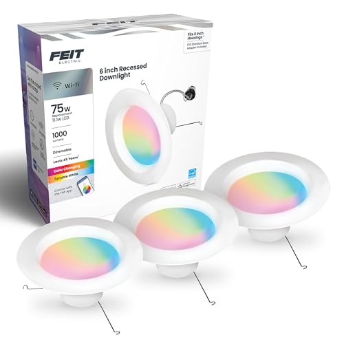 The Feit Electric Smart Recessed Downlights 5/6-Inch are the budget retrofit I trust most because the product does not ask you to excuse obvious corners. You still get 1000 lumens, tunable white, full color, schedules, and Alexa or Google Assistant support for about $15.44 per light in the current 3-pack. That is a materially better ceiling-upgrade story than spending Hue money in a laundry room or hallway where nobody is going to admire the app polish.